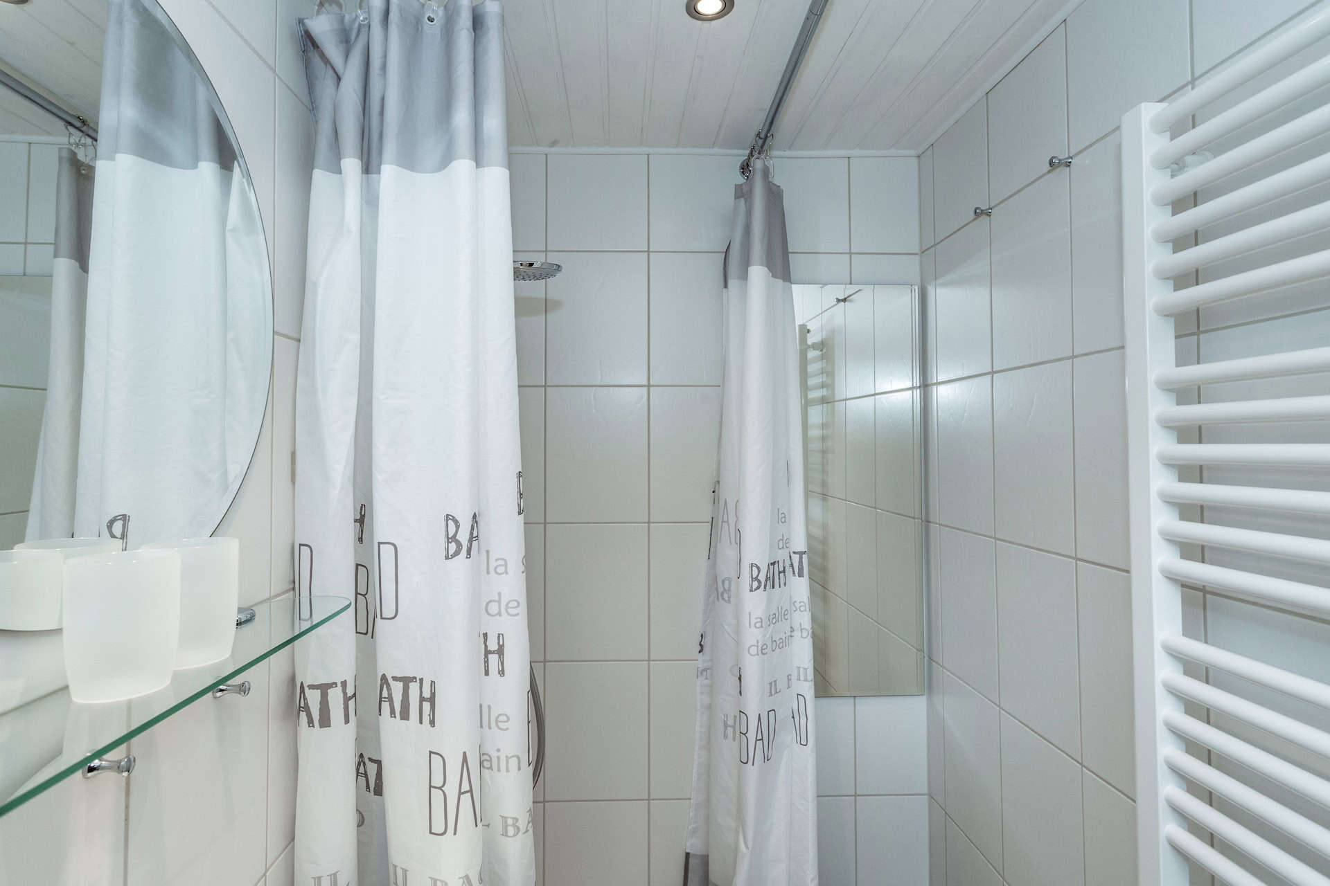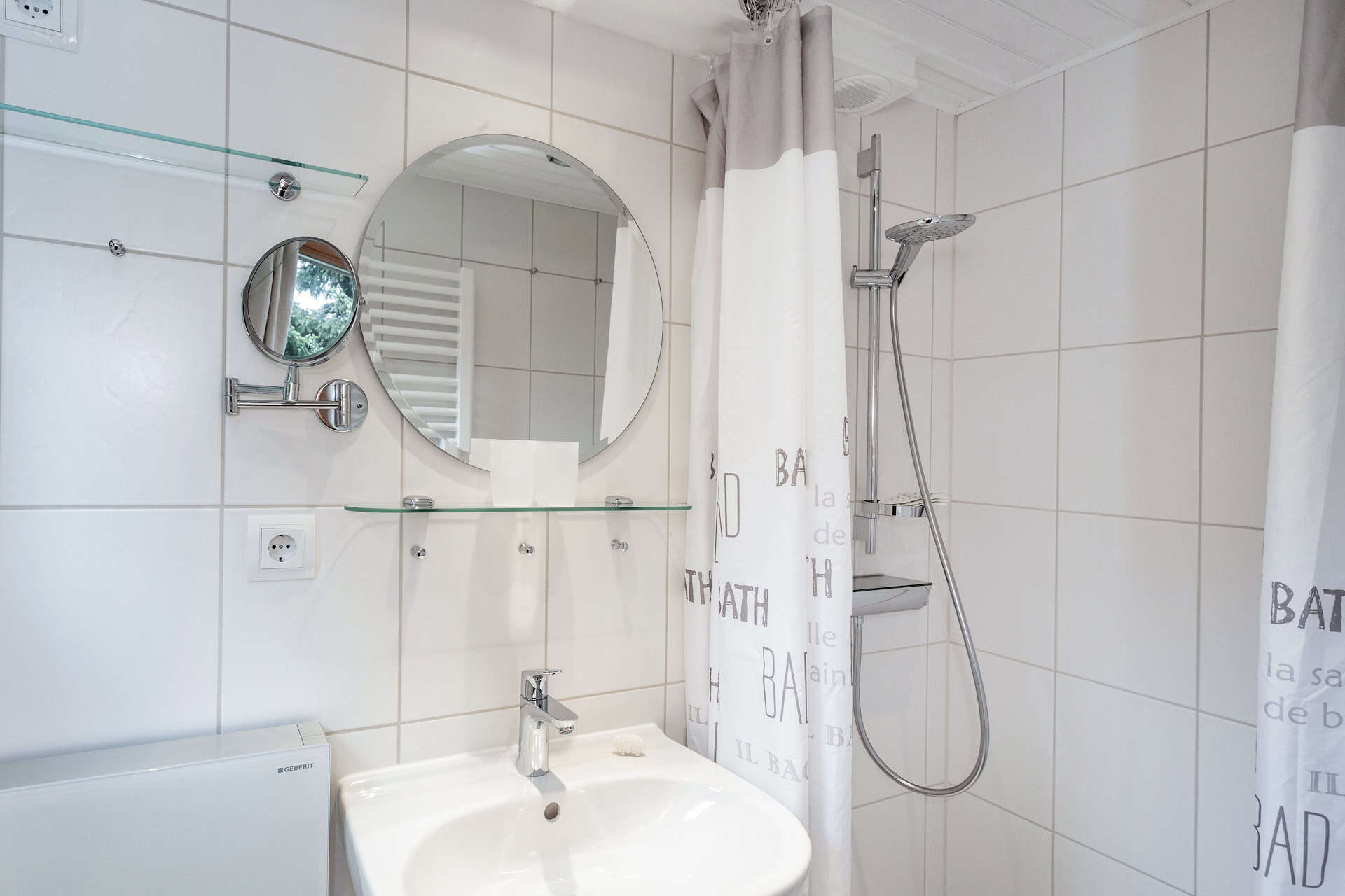 - Duschbad mit Toilette, Föhn, Handspiegel mit Vergrößerung, Kosmetikspiegel, Ganzkörperspiegel