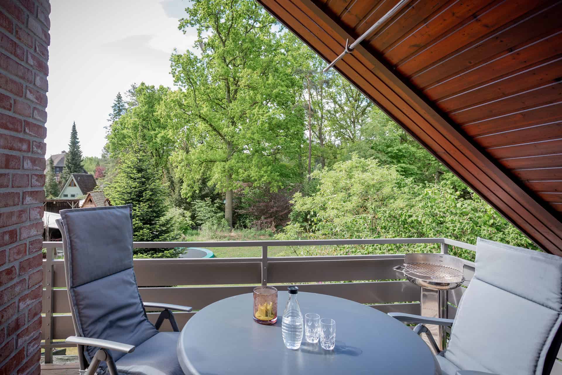 Die Wohnung im Dachgeschoss „Marie“ ist ca. 109 m² groß, verfügt über 4 Betten in 2 Schlafzimmern, ein Duschbad mit WC, ein sehr großes Wohn- und Esszimmer mit offener Küche (und „Küchenschlafsofa“), sowie Südbalkon mit Gartenmöbeln, Grill und Nordbalkon.